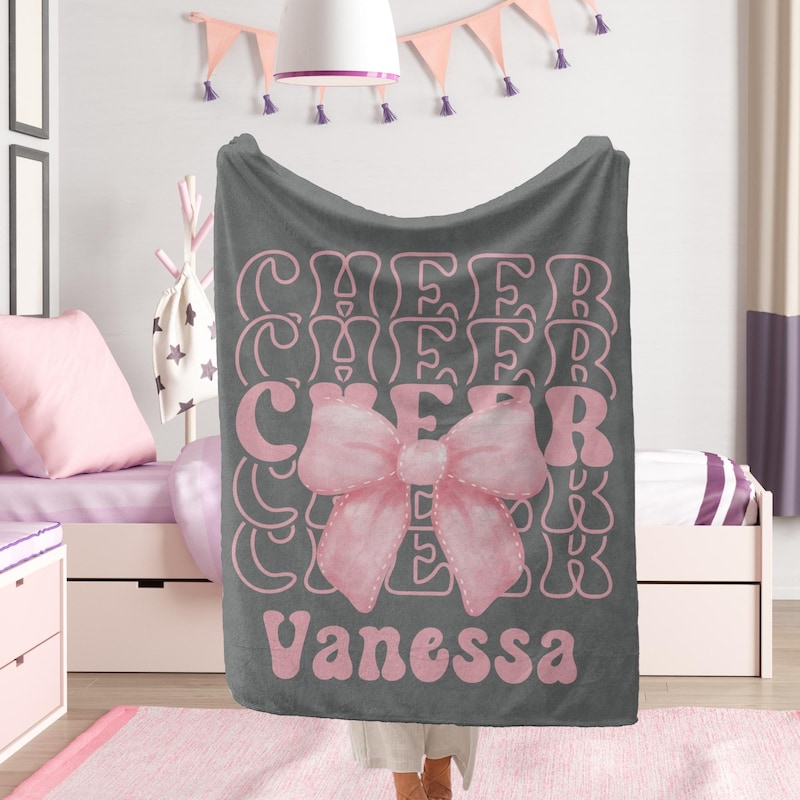 - Customizable Design: Personalize the blanket with your cheerleader’s name and cheer bow design, making it a unique and special keepsake for any young athlete.