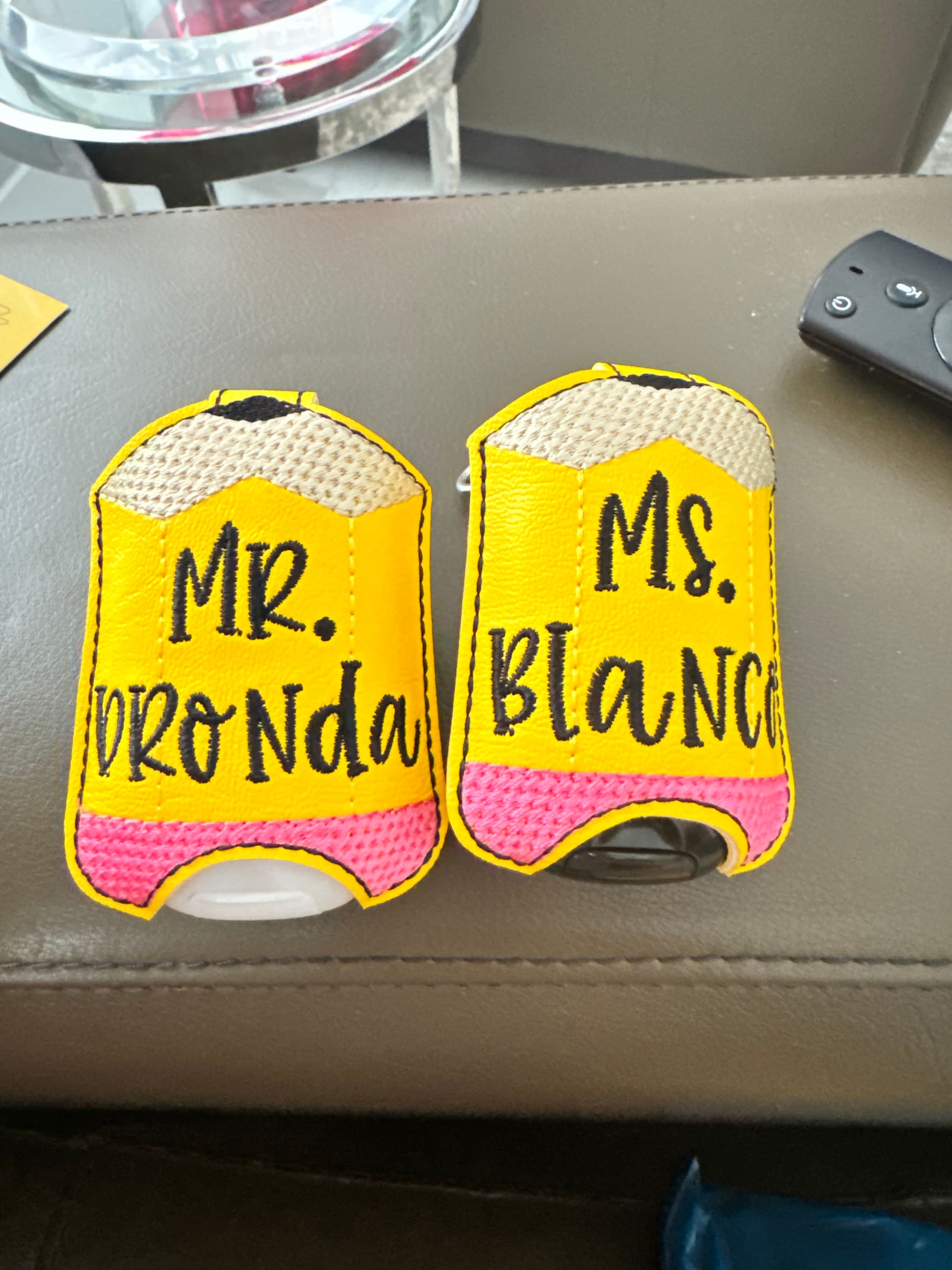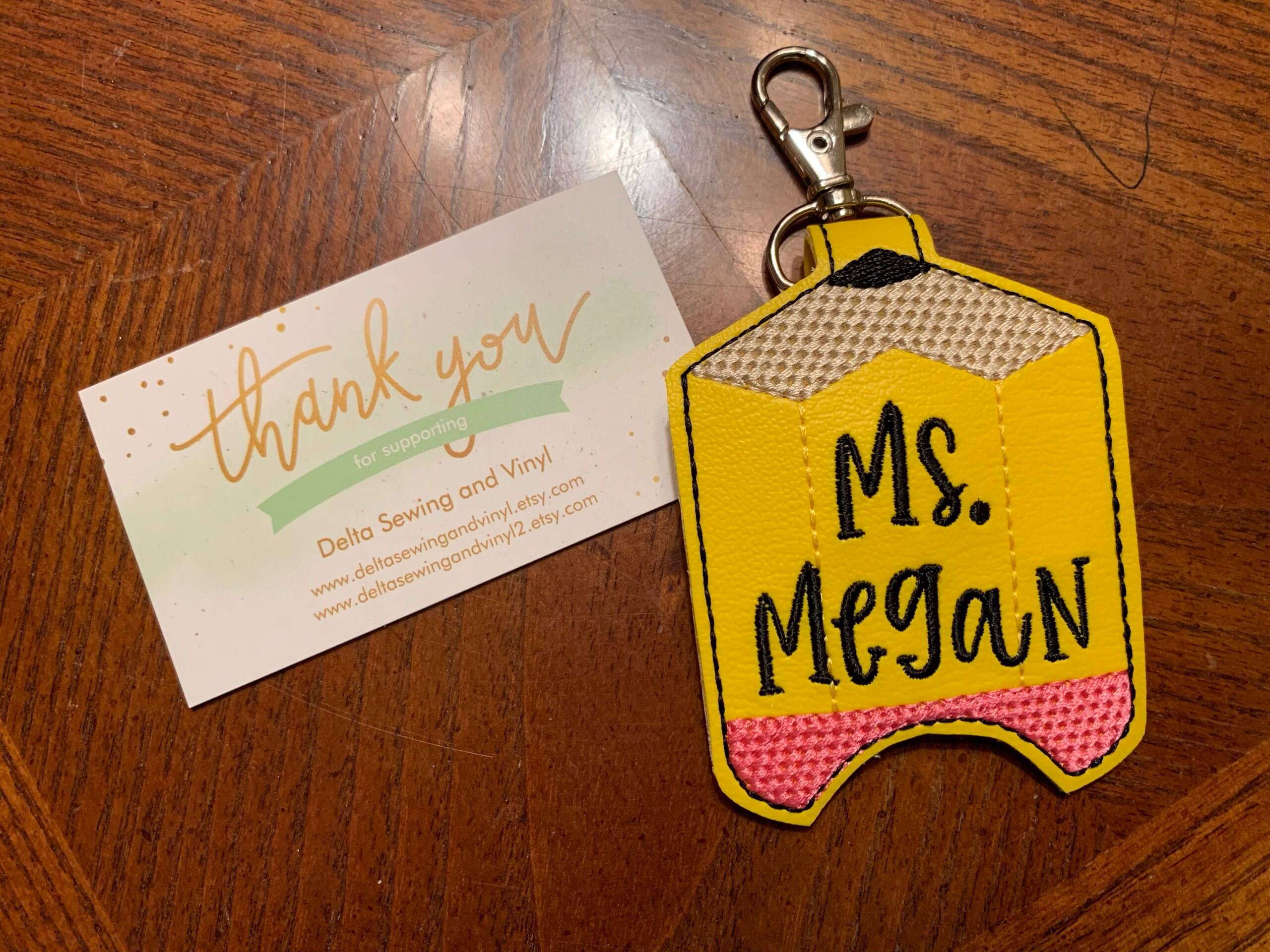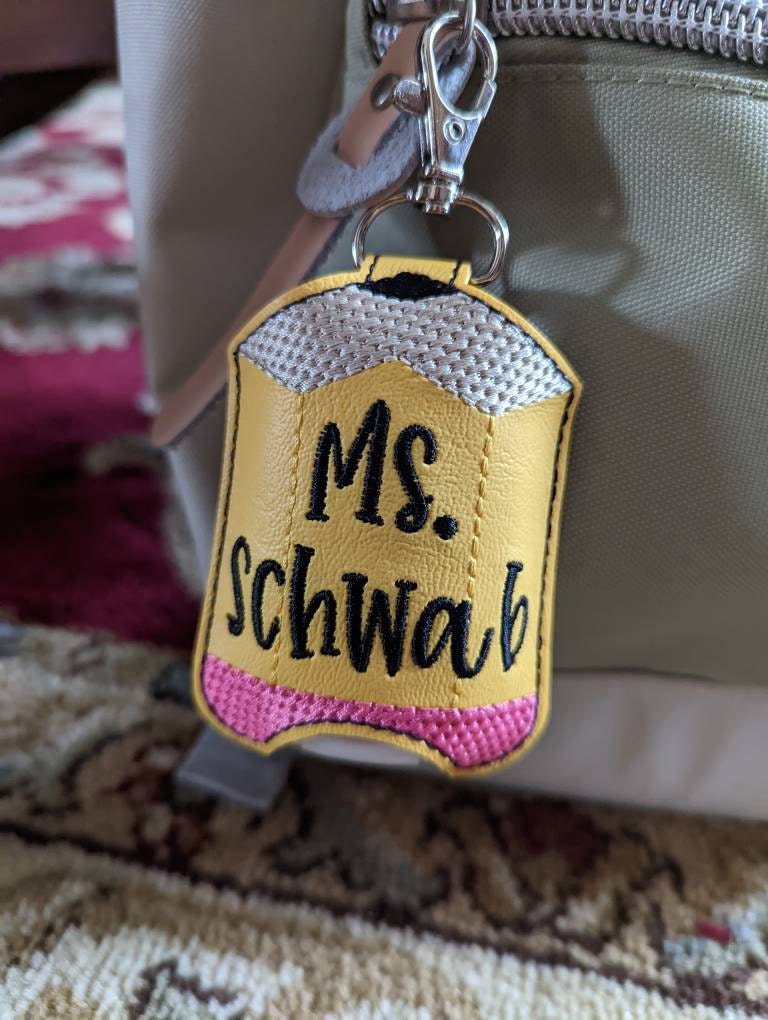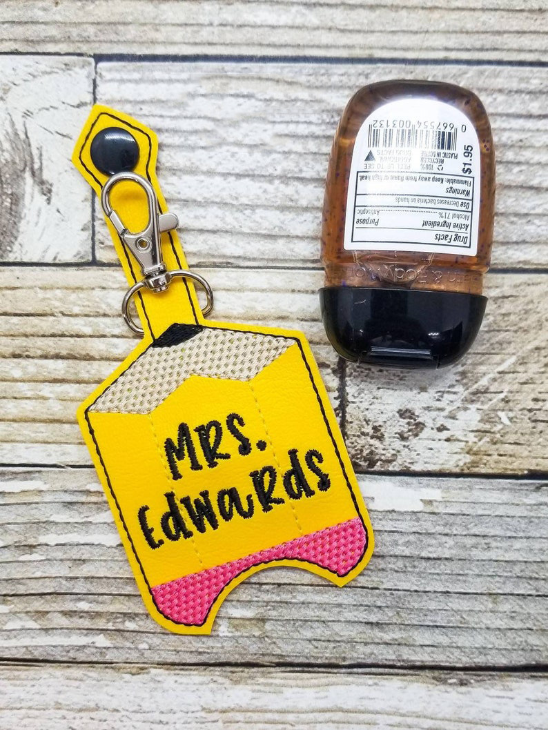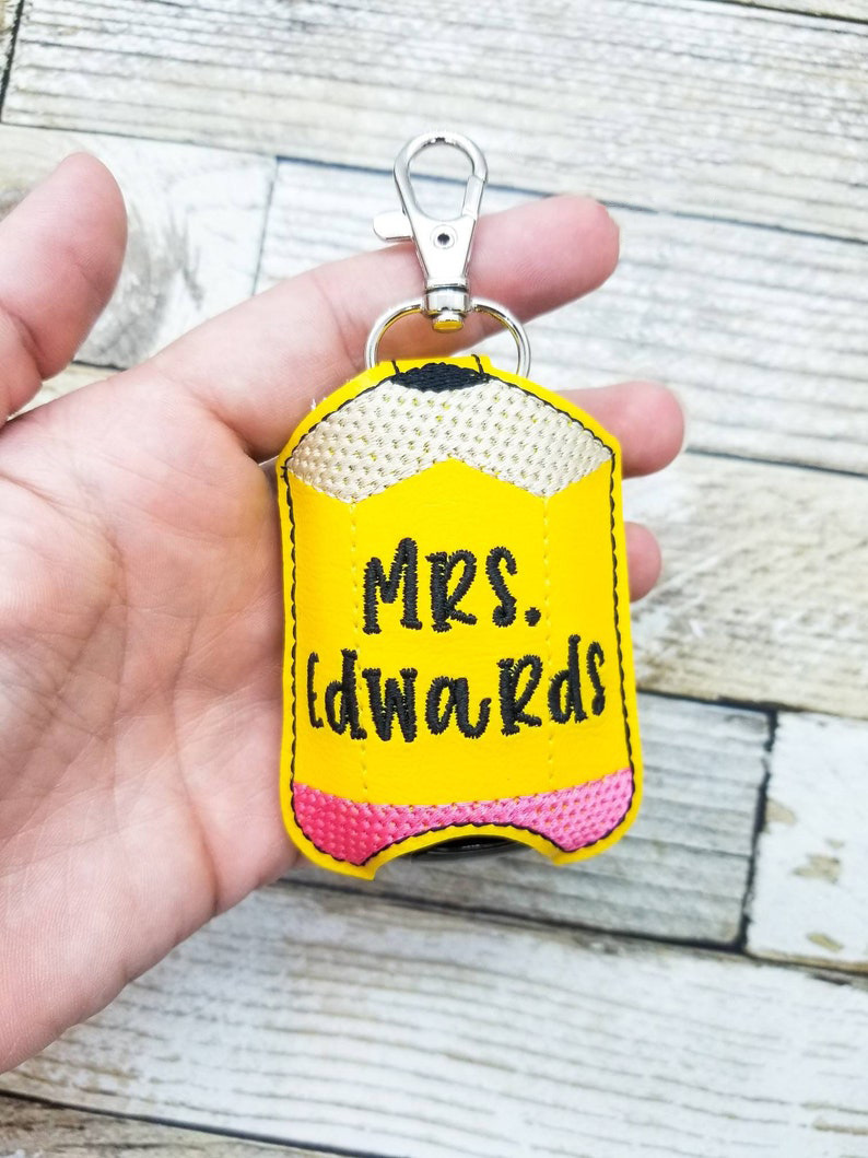 Brighten up your bag or classroom with this adorable pencil-shaped hand sanitizer holder! Designed with teachers in mind, this cute and practical accessory fits travel-size bottles and clips easily onto backpacks, purses, or lanyards.
