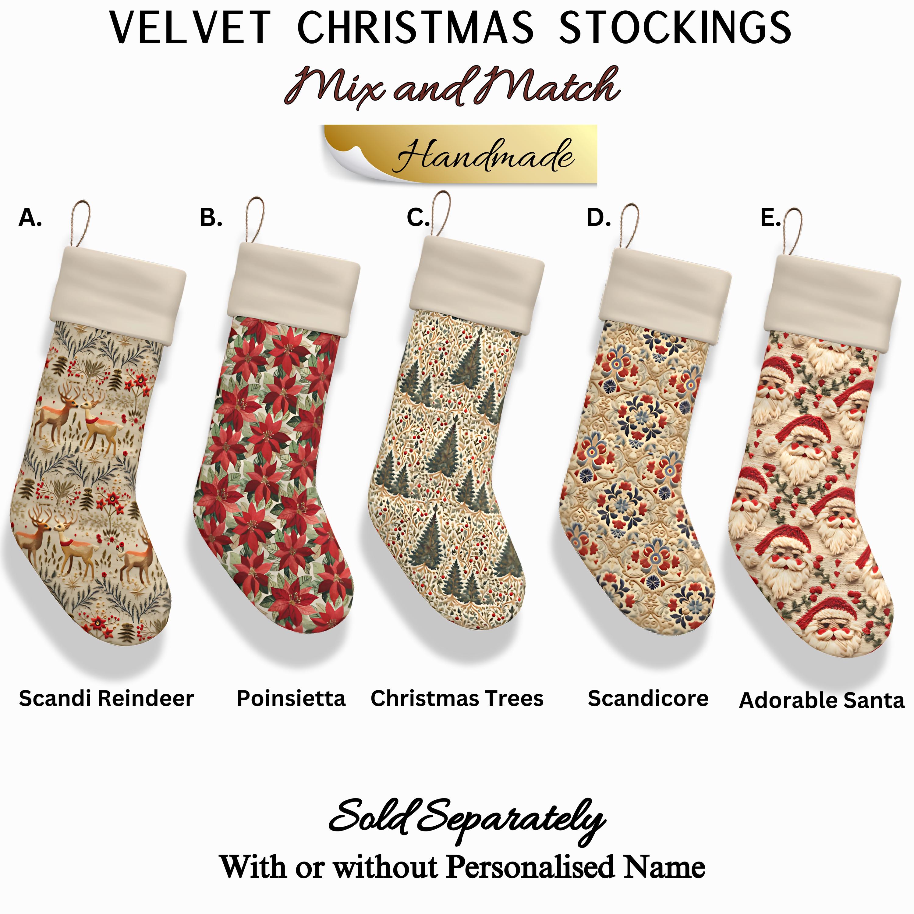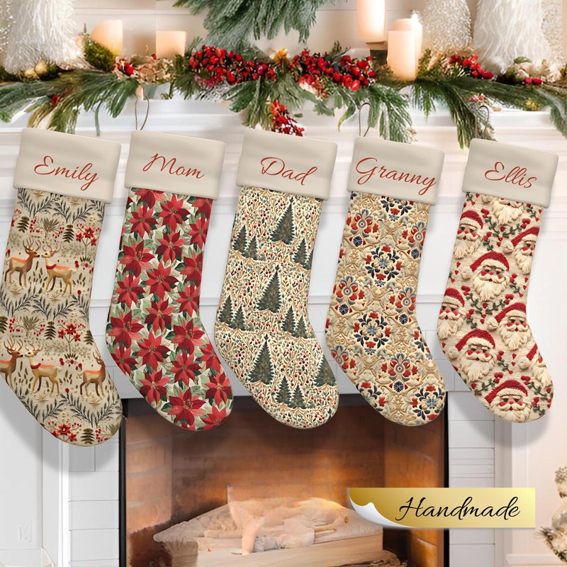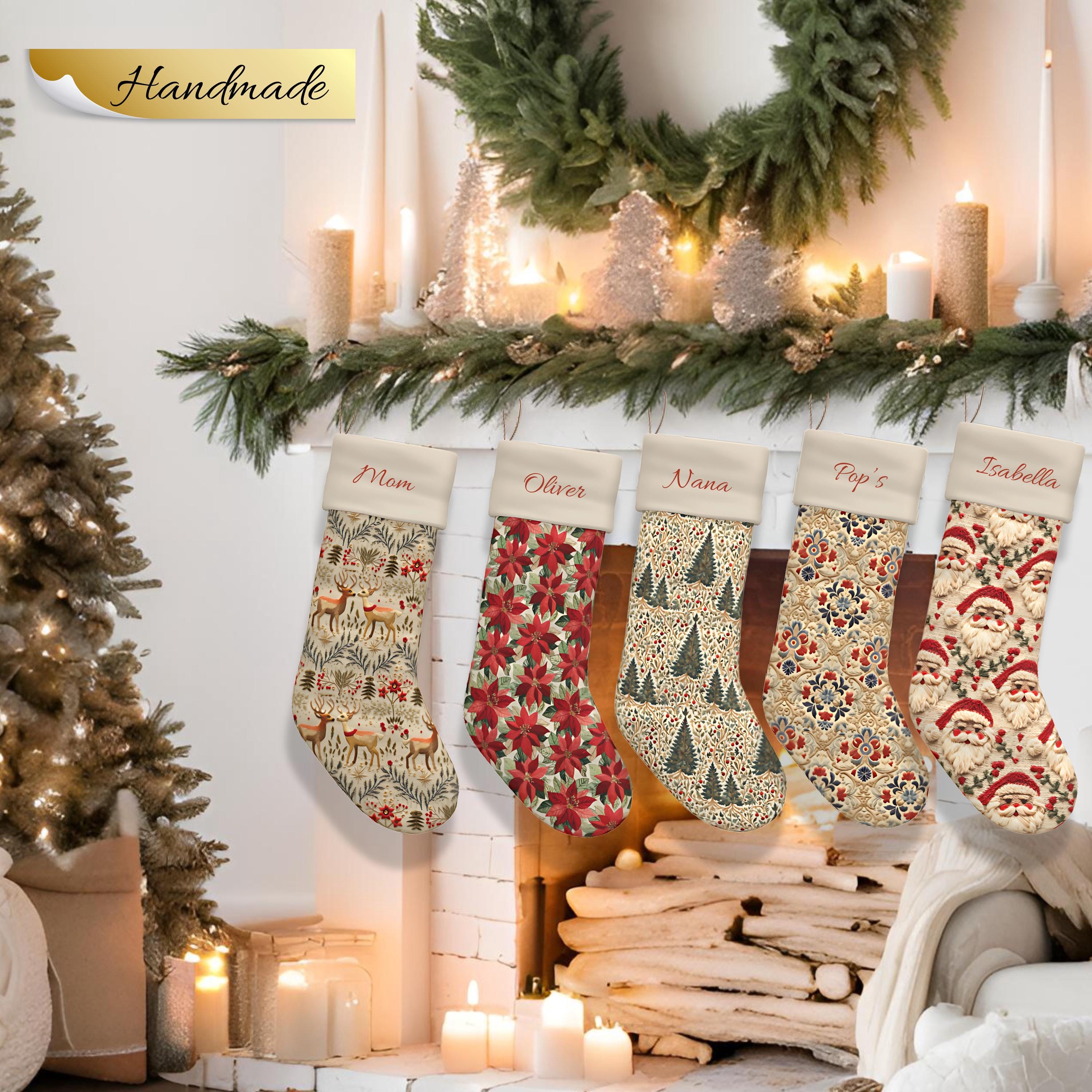 🎄Make Christmas extra special with our personalized soft velvet stockings, perfect for your family and friends! Each stocking is featuring beautiful vintage-inspired prints that mimic classic embroidery and knitted fabrics.